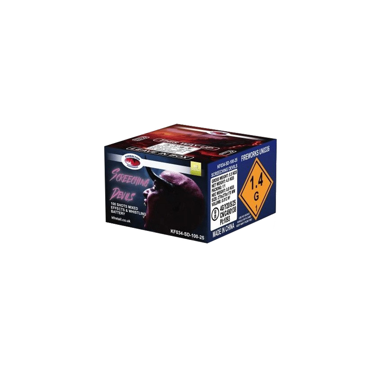 100 shots, 70 seconds. A redeveloped 100 shot barrage punctuated with paper whistles, tourbillions and brocade strobe bursts